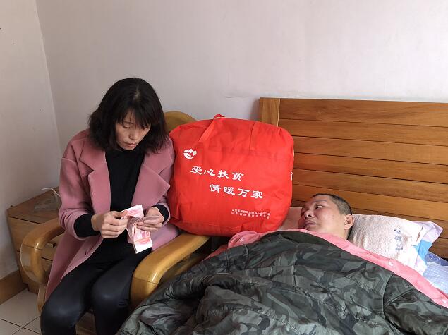 2月26日,正值2018 新春佳節(jié)之際,山東省扶貧開發(fā)基金會秘書長王景輝,洪力網(wǎng)副總經(jīng)理楊瑩,副秘書長、山東天使健康救助聯(lián)盟秘書長、山東廣播電視臺《公益山東》副制片人晁玉萍等在山東省血液中心獻血辦主任王淑榮的陪同下,專程從濟南趕往淄博市張店區(qū)看望和慰問因重病陷入困境的無償獻血者張明豹。