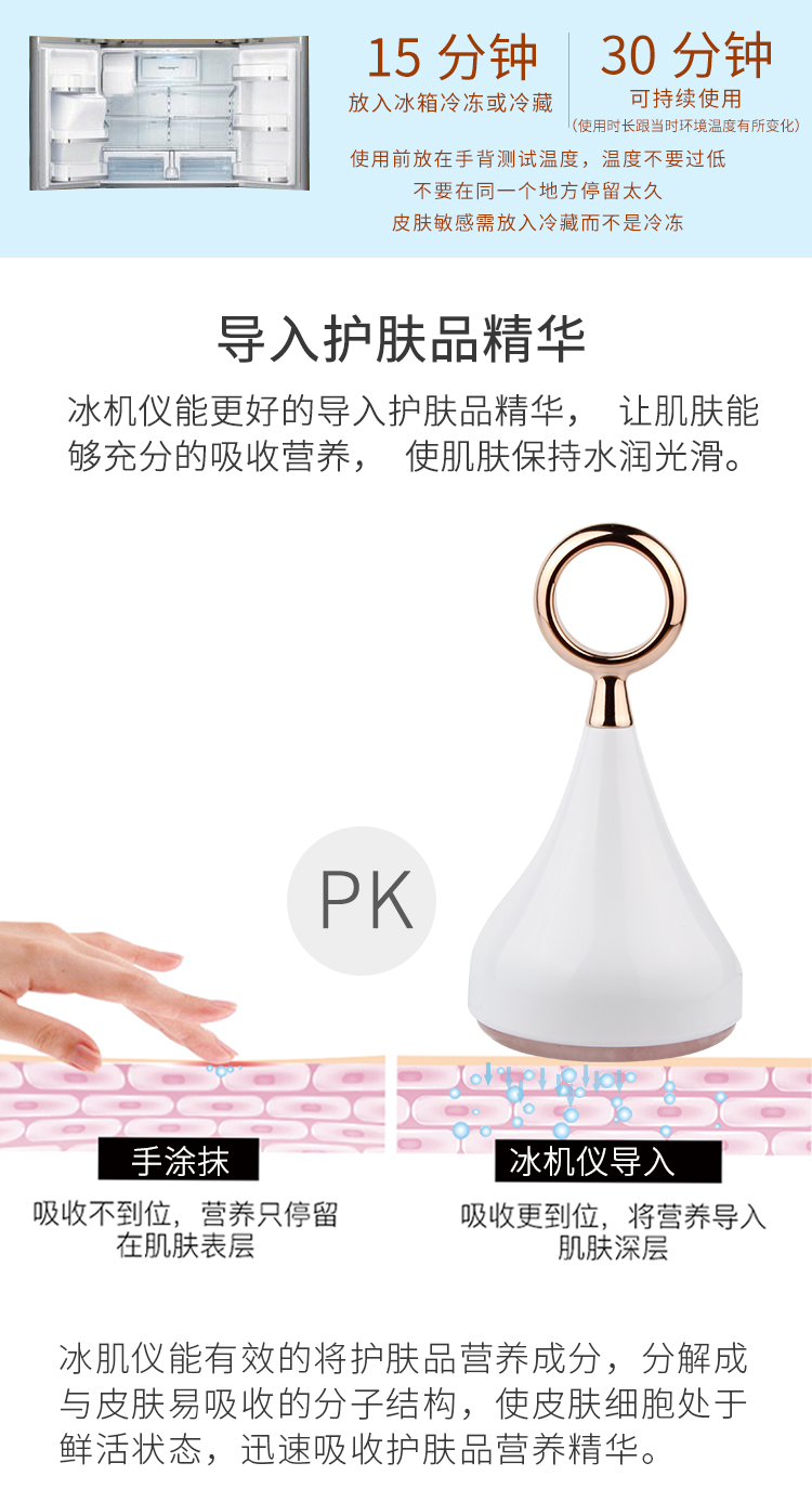 利用物理冰肌原理,收鎖毛孔,美妝導入