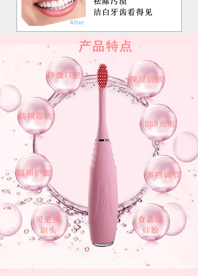 3、由于硅膠特殊的物理性能 (抗菌、奶、耐磨損),單個(gè)硅膠刷頭可使用半年,就像??粯由ⅰ?聲波電動(dòng)牙刷-212F聲波電動(dòng)牙刷-212F," />